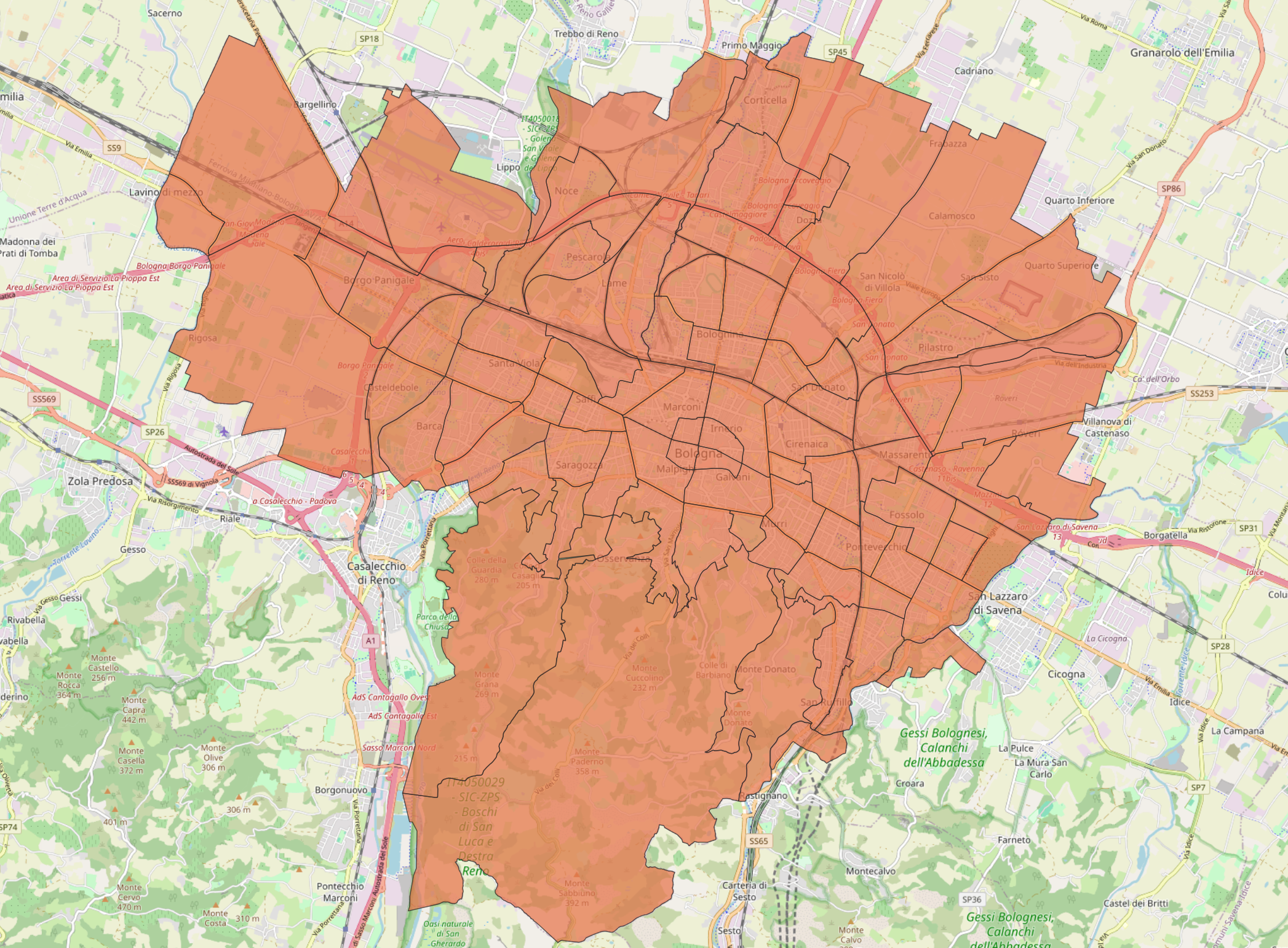 Aree statistiche contains the division of the municipal territory into 90 statistical areas and meets the need of a grid to analyze the environment in a more detailed way than the traditional division of Bologna into districts or zones, and at the same time sufficiently concise compared to the highly fragmented structure of census sections.